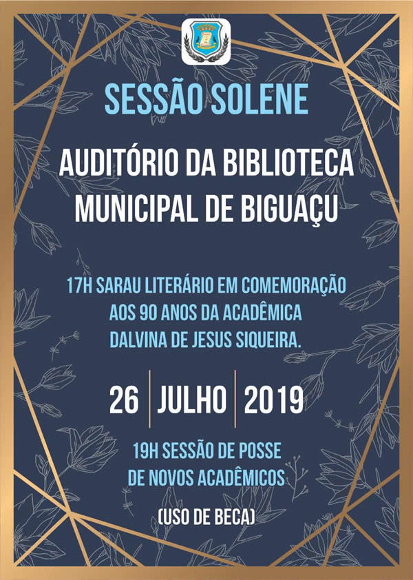 Posse de novos Acadêmicos Sarau Literário Homenagem à Acadêmica Dalvina de Jesus Siqueira pelos seus 90 anos
